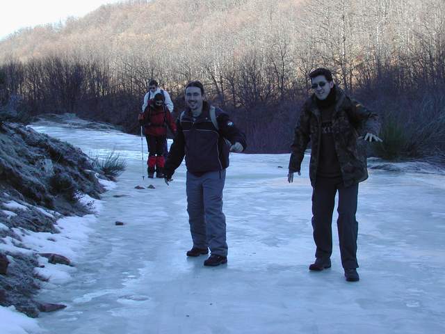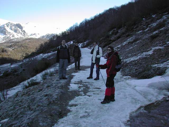 Marcha realizada el dia 22 de Enero de 2006 por Elisa, Ruben, Victor, Juanjo y Josue. En lugar de realizar la ruta normal siguiendo el curso del rio, subimos por las laderas superiores a la cueva para hacer el recorrido circular. Nos encontramos mucho hielo que no presentaba grandes problemas por la ruta normal pero que si que nos puso en algun aprieto por la ruta seguida.