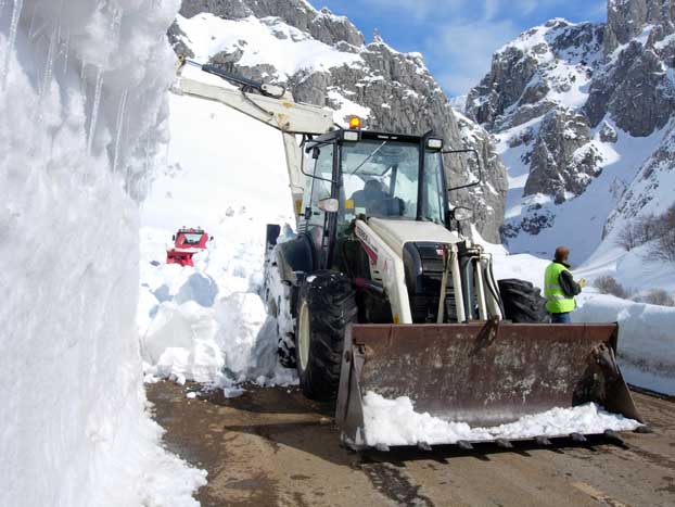 Desmontando nieve cerca de las Peñas de la Hoz (carretera direccion Piedrasluengas) Alto Valle del Pisuerga. Gran diferencia en la cantidad de nieve con la siguiente foto, tomada con un dia de diferencia en la zona del Alto Valle del Carrión