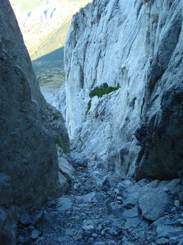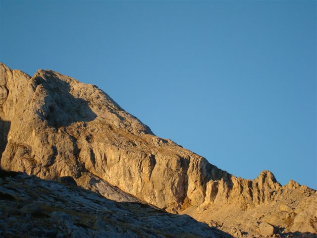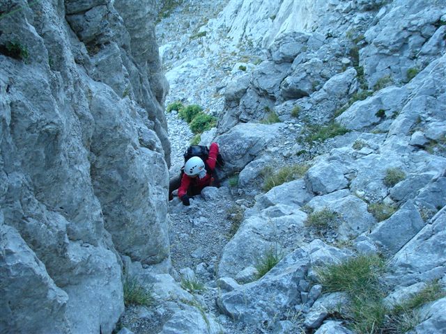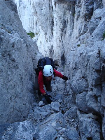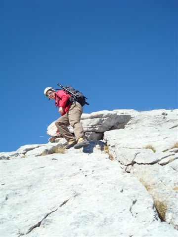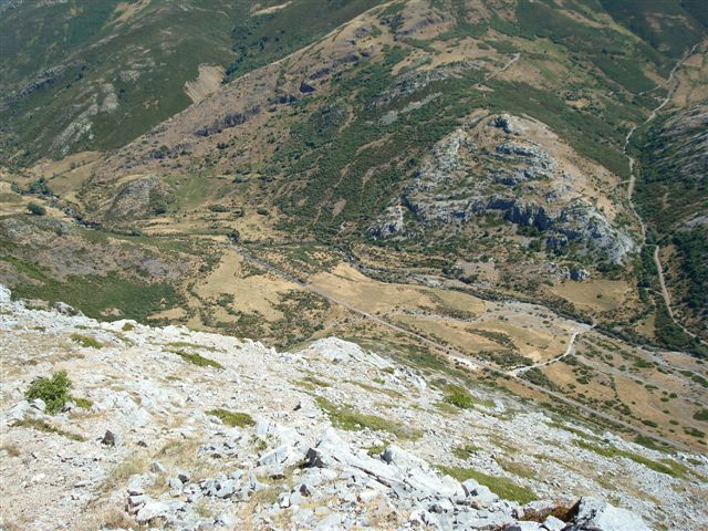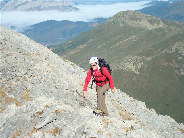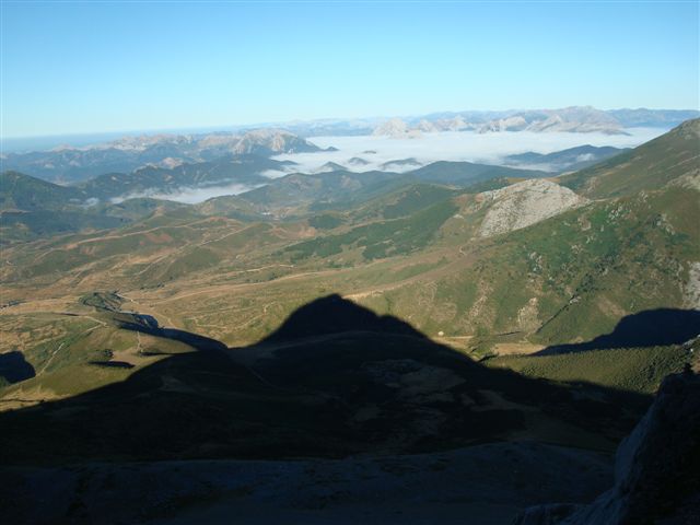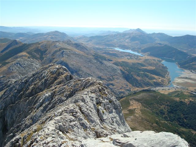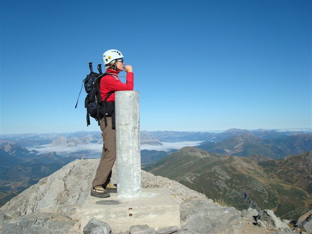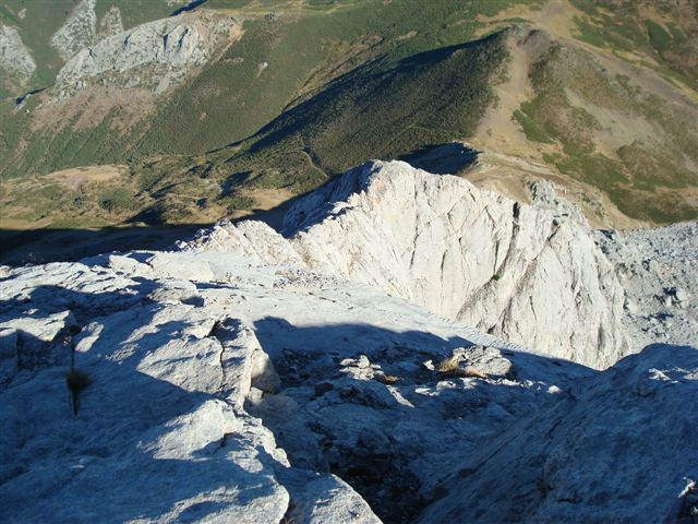 23/08/2008 6:45 de la mañana y -1.5ºC, sí, sí,… ¡helando un 23 de Agosto! Media hora después las primeras luces del día alcanzan el Espi descubriendo un mundo de rutas y rincones por toda la cara Norte, conocidos por todos:23/08/2008 Rincones del Espi: Comienzo de la Arista Noroeste en las cercanías del Collado de Arra.23/08/2008 Rincones del Espi: En el sumidero de la Sima del Anillo nos encontramos con estas curiosas formas talladas sobre la roca caliza: Olas moldeadas por el agua y el hielo.23/08/2008 Rincones del Espi: El Nevero Perpetuo en el Circo Norte.23/08/2008 Rincones del Espi: La “V” en el Espolón Norte.23/08/2008 Desde el Collado de Arra flanqueamos el Espi hacia el Sur por la cara Oeste hasta que divisamos la entrada de la Canal Oeste para la que todavía nos queda una más que sufrida, por no decir un taco, pedrera.23/08/2008 Los tres pasos complicados, son 2 resaltes y un estrechamiento. El 1º resalte está justo en la entrada y se puede hacer bien si lo bordeamos por la izquierda. Cerca de la mitad de la Canal está el 2º resalte, para nosotros el más complicado, será una trepada de unos 2 metros por un bloque empotrado, el truco es estar tranquilo y si no se ve claro pararse a pensar el tiempo que haga falta para ver la mejor opción, hay buenos agarres y lo pasamos por la izquierda. Y ya en la parte final de la Canal hay un estrechamiento que se pasa bien pero la mochila molesta mucho y te provoca una sensación de “encajonamiento”. Otra vez de nuevo, el truco es la tranquilidad. La pasamos por la derecha que es la zona más estrecha aunque se puede pasar bien por la izquierda subiendo directamente por unas fisuras.3/08/2008 Mampodre, mar de nubes sobre Riaño y la sombra de la pirámide del Espi proyectada sobre el valle cerca de Valverde de la Sierra, todo un espectáculo para la vista. Parece que han puesto ruedas a las casas y se ha puesto todas al sol, fuera de la sombra.23/08/2008 Noe superando el 1º resalte en la entrada de la Canal.23/08/2008 Camino del 2º resalte situado justo a continuación del que vemos en primer plano.23/08/2008 La tensión y/o concentración del momento impide que haga fotos del paso del 2º resalte. Vuelvo a sacar la cámara cuando nos aproximamos al estrechamiento. A lo largo de toda la Canal hay mucha piedra suelta, desde piedra pequeñita hasta auténticos bloques de piedra, ¡¡ casco obligatorio!! Se pueden observar perfectamente la cantidad de piedra suelta y sus distintos tamaños.23/08/2008 El estrechamiento. Más fácil por las fisuras de la izquierda, aunque lo pasamos por la derecha, donde la mochila nos puso en algún que otro apurillo.23/08/2008 Noe negociando el estrechamiento con la mochila pegando en la roca.23/08/2008 Saliendo del estrechamiento, en un ambiente muy chulo y con la adrenalina a tope. Casi hemos terminado la Canal. Señalar que a lo largo de la Canal hay varias chapas en la roca y en el final, aunque no lo vimos, también debe haber un pitón, para asegurar tanto el ascenso como el descenso.23/08/2008 El premio a la salida de la Canal es como el gordo de Navidad, al Oeste toda la montaña leonesa y hacia el Norte vemos todo el macizo central y occidental de Picos.3/08/2008 Salida de la Canal Oeste. 1º Objetivo del día conseguido, hemos gozado como niños pequeños subiendo la Canal. Pese a la alegría no hay que descuidar para nada la precaución todavía nos quedan 2 objetivos más, llegar a la cima del Espi y bajar hasta Pinollano por la Arista Este. ¡¡A por ellos!!23/08/2008 Cuando terminamos la Canal avanzamos en sentido ascendente hacia la derecha, en diagonal hacia la derecha buscando la mejor línea de subida.23/08/2008 En 15 minutos divisamos sobre nosotros un canalizo que nos dejará en la Arista Noroeste, a pocos metros ya de la cima.23/08/2008 Ya en la Arista Noroeste se nos ponen los dientes largos, no sólo por las vistas sino por la pinta que tiene la mencionada Arista. El tiempo no puede ser mejor, sopla una ligera brisa para enfriar el “calentón” que llevamos encima.23/08/2008 Últimos metros. Todo este tramo de Arista no tienen ninguna dificultad. A estas alturas de la ruta se te olvida el madrugón, el frío del principio y todo…Es como hacer un “reset” en el cerebro.23/08/2008 ¡¡Cima a la vista!! El Espigüete nos espera por 3ª vez. Los últimos metros antes de tocar el vértice geodésico de una cima siempre son muy especiales y emotivos, sea la 3ª, la 1ª o la 17ª vez23/08/2008 10:15. Hemos tardado 3 horas y media con paradas. Un traguito en la cima, viento en calma, cielo casi despejado ¿qué más se puede pedir? Hacemos las fotos de rigor (por cierto se me olvidó hacerme una foto…os juro que fui yo el que subió con Noe), nos quitamos las mochilas y comemos un poquito. Da pena bajarse con un día así.23/08/2008 A nuestro lado Espi, así lo bautizamos, correteaba entre las piedras y de vez en cuando se acercaba y nos miraba para ver si le dábamos algo de comida ¿le habrá costado mucho subir hasta aquí?23/08/2008 Iniciamos el descenso, bajaremos por la Arista Este hasta el final. El mar de nubes sobre Riaño se ha “evaporado” como por arte de magia.23/08/2008 Curruquilla, Aguja del Pastel y Curavacas, distinguimos parte de la última ruta por estas tierras. La Cima Este del Espi, será el verdadero inicio del descenso.23/08/2008 Llegando a la Cima Este nos volvemos a ayudar de las manos, ¡¡el Espi no da un respiro!!23/08/2008 Clásica foto: La Cima Oeste (principal) desde la Cima Este (secundaria)23/08/2008 1ª Sima según bajamos por la Arista ¡¡peligrosísima!! en verano y en invierno no os quiero ni contar…aunque el/la propietario/a del nido no debe pensar lo mismo.23/08/2008 En verano la caliza se agarra muy bien a las botas, en invierno con hielo será otra cosa bien distinta. Mis rodillas empiezan a sufrir el descenso por la Arista… y lo que queda…23/08/2008 Parte intermedia de la Arista, parece un dragón chino d