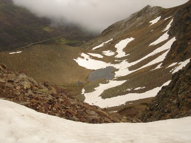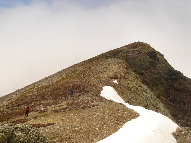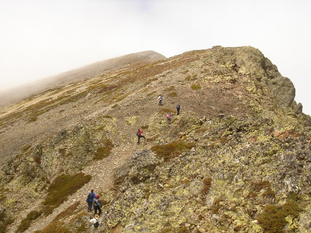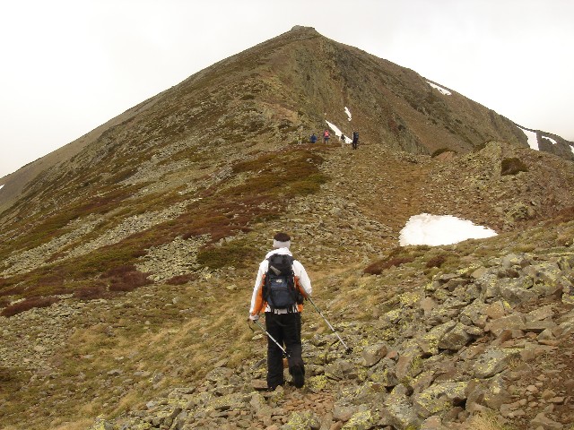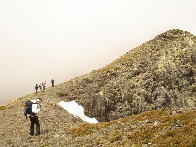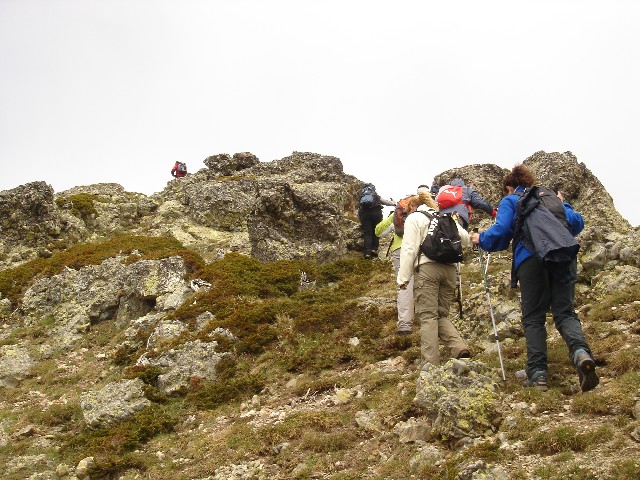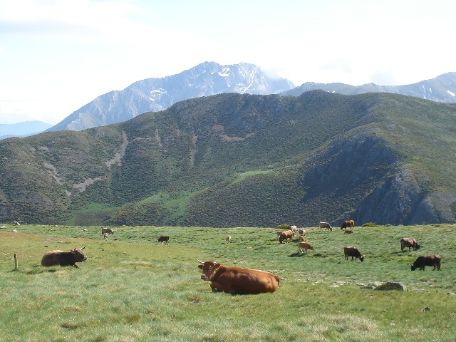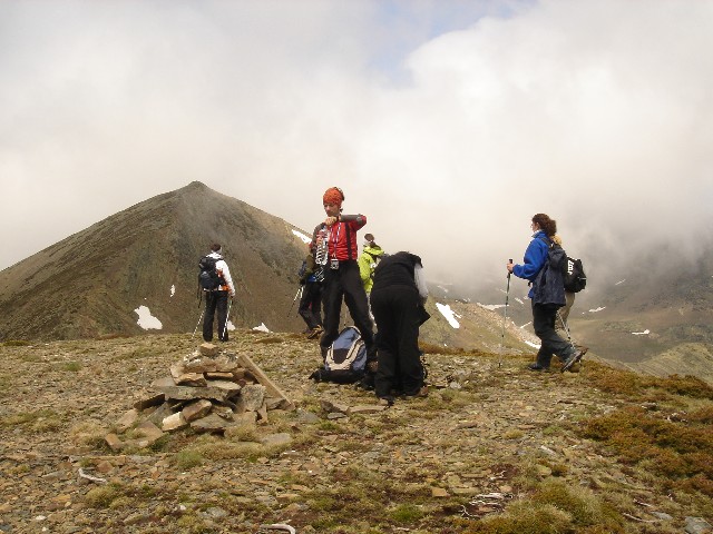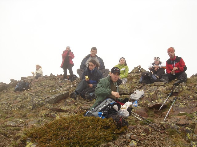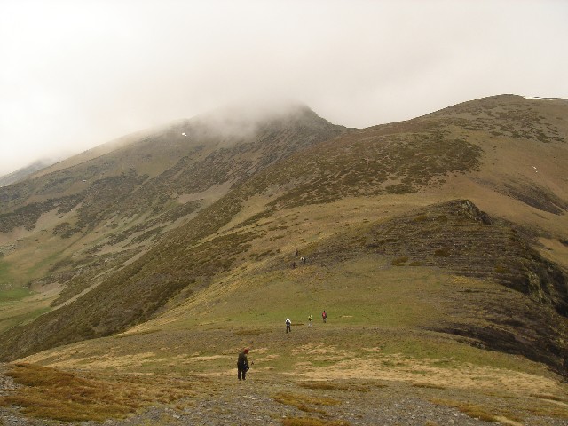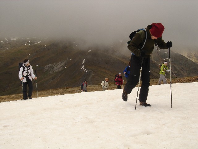 26/05/2007 La tromba de agua que nos acompañó hasta La Lastra el viernes y lo nublado que despertó el sábado, hicieron que se trastocaran los planes: Cambiamos la subida al Curavacas por un “paseo” de unas dos horas hasta la Poza de las Lomas. O eso creíamos (o nos contaron Alberto y Jesús) cuando en el aparcamiento de Cardaño de Arriba empezamos nuestra ruta26/05/2007 Seguimos por la senda del Pozo de las Lomas. A unos quince minutos cruzamos el arroyo Valcabe. Cogemos el sendero de la derecha que remonta el Río Lomas.26/05/2007 Mirada atrás: La cara norte del Espigüete cubierto por un velo de nubes.26/05/2007 A los cuarenta y cinco minutos de haber empezado empieza a modificarse “misteriosamente” la ruta: Dejamos el sendero del Pozo de las Lomas y nos desviamos a la derecha (y arriba) en dirección al Ves. La lluvia caída ha trazado surcos en la ladera.26/05/2007 Alberto dueño de la primera cima.(Ana, ya te dije que era muy chula esta foto)26/05/2007 Después bajamos hasta el collado del Ves. Sorprendemos a dos ciervos. Uno de ellos con impulsos limpios y ágiles nos muestra lo sencillo que es llegar a la cumbre, para él, claro. También sorprendemos y nos sorprenden dos perdices que parecen tener hélices en vez de alas. Luego nos desviamos a la izquierda –saltamos un pequeño arroyo- y subimos a una loma y la bajamos –unos despistados- y otros la bordearon para subir a la izquierda al Alto del Ves.26/05/2007 Volvemos a pisar nieve en el Alto del Ves26/05/2007 En la cumbre del Alto del Ves empezamos a darnos cuenta de lo “rompepiernas” de estas subidas y bajadas: Ya nos espera otro alto con nombre de Estadio (y presidente).26/05/2007 De frente el Alto del Calderón. Sí está alto, sí.26/05/2007 Paramos para ver una laguna a la derecha del cordal que une el Alto del Ves con el Alto del Calderón.26/05/2007 Llegamos al Alto del Calderón. Volvemos a sacar chocolatinas y frutos secos26/05/2007 Seguimos cresteando, a la derecha aparecen las agujas de Fuentes Carrionas26/05/2007 Otro pico, este sin nombre aunque Celestino nos hubiera parecido precioso.26/05/2007 Seguimos subiendo al pico sin nombre, a pesar del esfuerzo no sobra la ropa26/05/2007 El pico sin nombre tiene al lado otro sin nombre. El pico del tío Celestino es el ¡ 3º ¡ después del Alto del Calderón. El grupo empieza a mostrar su lado más humano. (Enfados e insultos contra los cabecillas)26/05/2007 El paisaje de la derecha sirve para relajar tensiones: Majadas de Fuentes Carrionas, río Carrión, Agujas de Fuentes Carrionas26/05/2007 Es una foto de lo anterior con más perspectiva. Se resiste a aparecer la lluvia.26/05/2007 La cumbre que más se ha hecho esperar: el alto del tío Celestino.26/05/2007 Alcanzar la cumbre no ha hecho olvidar viejos rencores. (Laura M. ahí no decías como ayer:-¿cuándo vamos al Curavacas?, ¿eh?)26/05/2007 Jesús sigue mirando más allá. Si el grupo hubiese detectado sus pensamientos (Pensamientos de Jesús: -En sólo una hora más subimos al Peña Prieta) el desenlace habría sido fatal. (Seguro)26/05/2007 Una auténtica pasada: La Laguna de Fuentes Carrionas Congelada.Alberto la descubrió después de llevar todos allí sentados 10 minutos. Aunque aún no lo exterioricemos sabemos que las cinco horas de ascensión han merecido la pena.26/05/2007 Pozo de las Lomas. El grupo hace silencio antes de empezar a bajar para seguir con la vista a un par de rebecos. La bajada con tanta piedra se hace tediosa pero ver tan cerquita nuestro “restaurante” y que está mejorando el tiempo nos consuela.26/05/2007 Al pico Lomas –por suerte- hoy no subimos26/05/2007 Agujas de Cardaño aún sin destapar del todo26/05/2007 de las Lomas. Parada de 1 hora para comer incluída la siesta al mismo precio26/05/2007 Agujas de Cardaño y Pozo. Estamos vacunados contra todas las cepas de estrés.26/05/2007 De vuelta. El Espigüete y el Pico Murcia se dejan ver26/05/2007 Sabemos que a Jesús le gusta rodearse bien, al sur: Espigúete y Murcia…26/05/2007 …y al norte26/05/2007 Curavacas: Hoy no hemos podido plantarla cara pero sólo hemos perdido una batalla.26/05/2007 No veo con gafas de sol y con los morros pintados de blanco a las vacas. NO A SAN GLORIO26/05/2007 Mucho más que se podría perder26/05/2007 Vuelta para ver desde la distancia las Agujas, y el viejo deseado Alto del Tío Celestino.26/05/2007 Contraste de colores, ¿No era así como pintábamos las montañas en el “cole”?26/05/2007 Últimos pasos, han sido 9 horas –son las 19:20- tenemos que mirar el reloj para saberlo porque aquí se pierde la noción del tiempo. Sin duda hay mentiras y mentirijillas